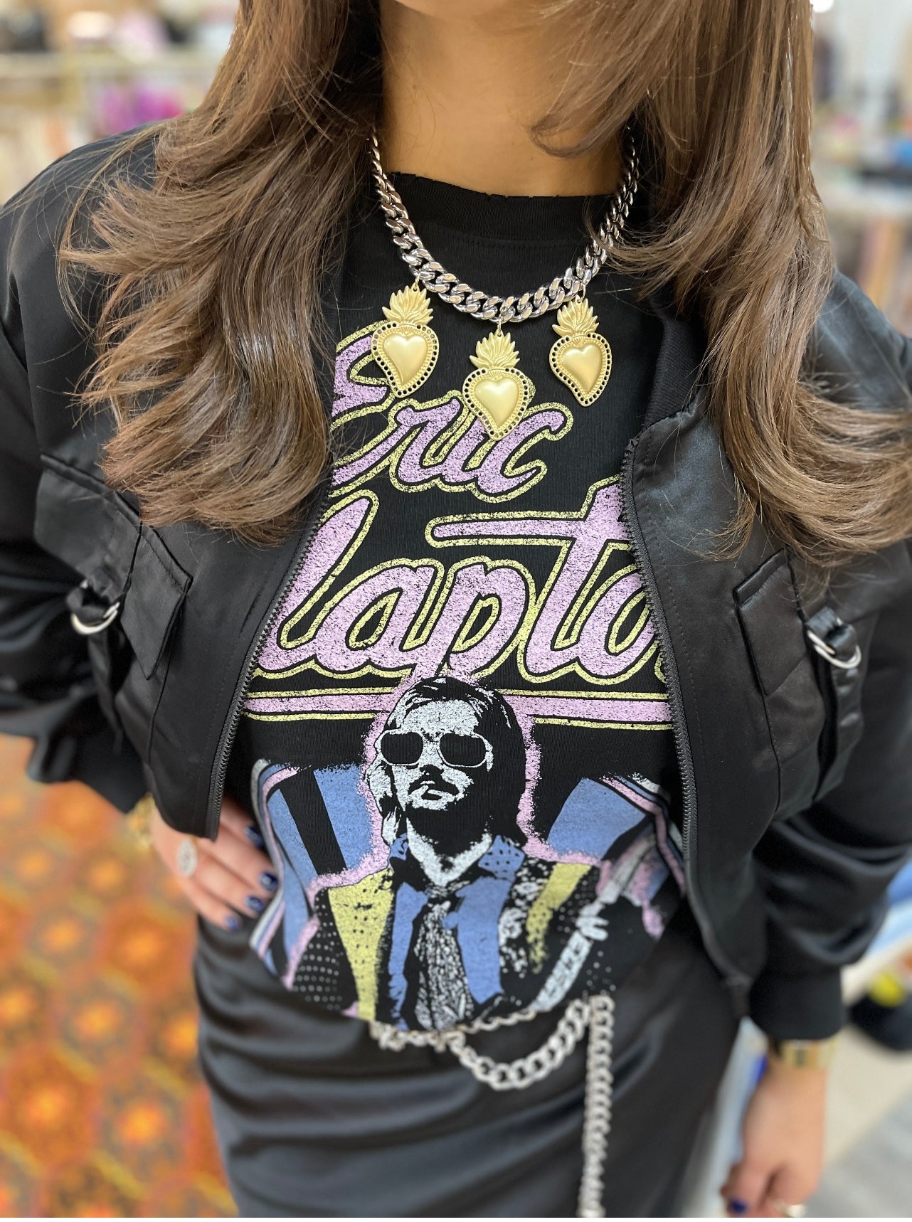 Handmade one of a kind two tone metal necklace with flame heart pendants